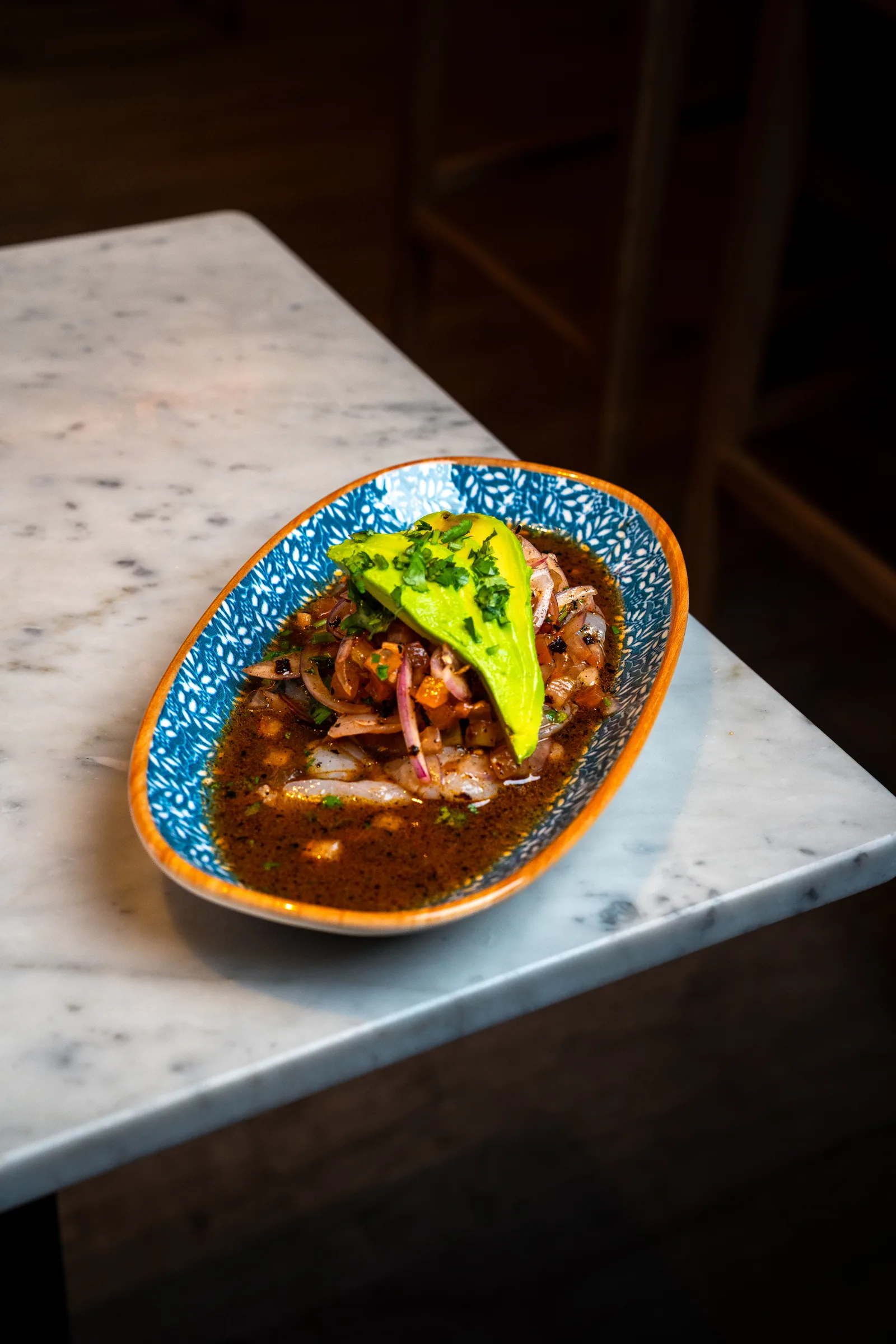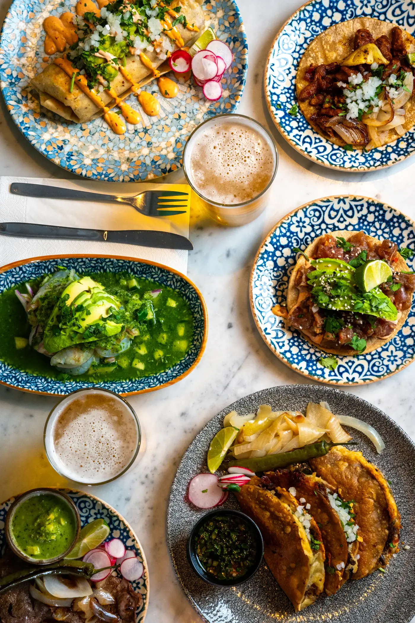 Våra tacos görs på glutenfria majstortillas och fylls med allt från marinerad pastor med ananas till birria tacos med långkokt barbacoa. För skaldjursälskare finns ceviche Mazatlán style och den heta ceviche negro.